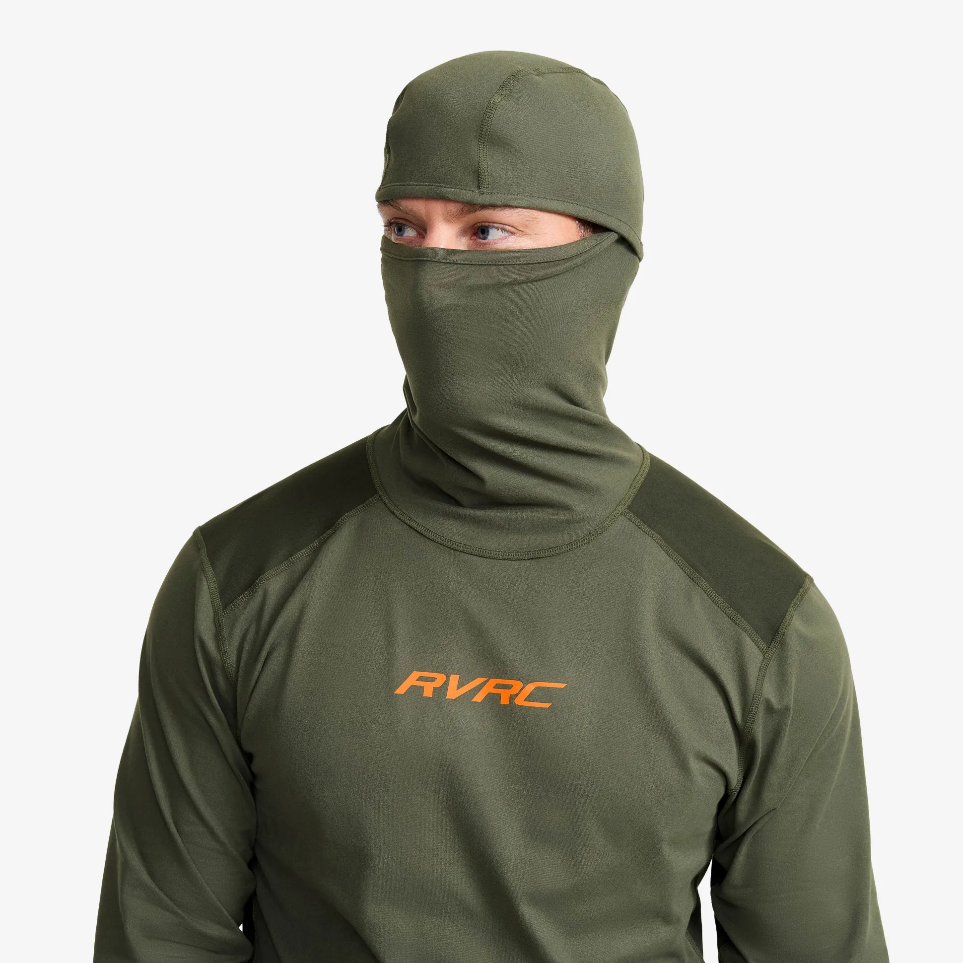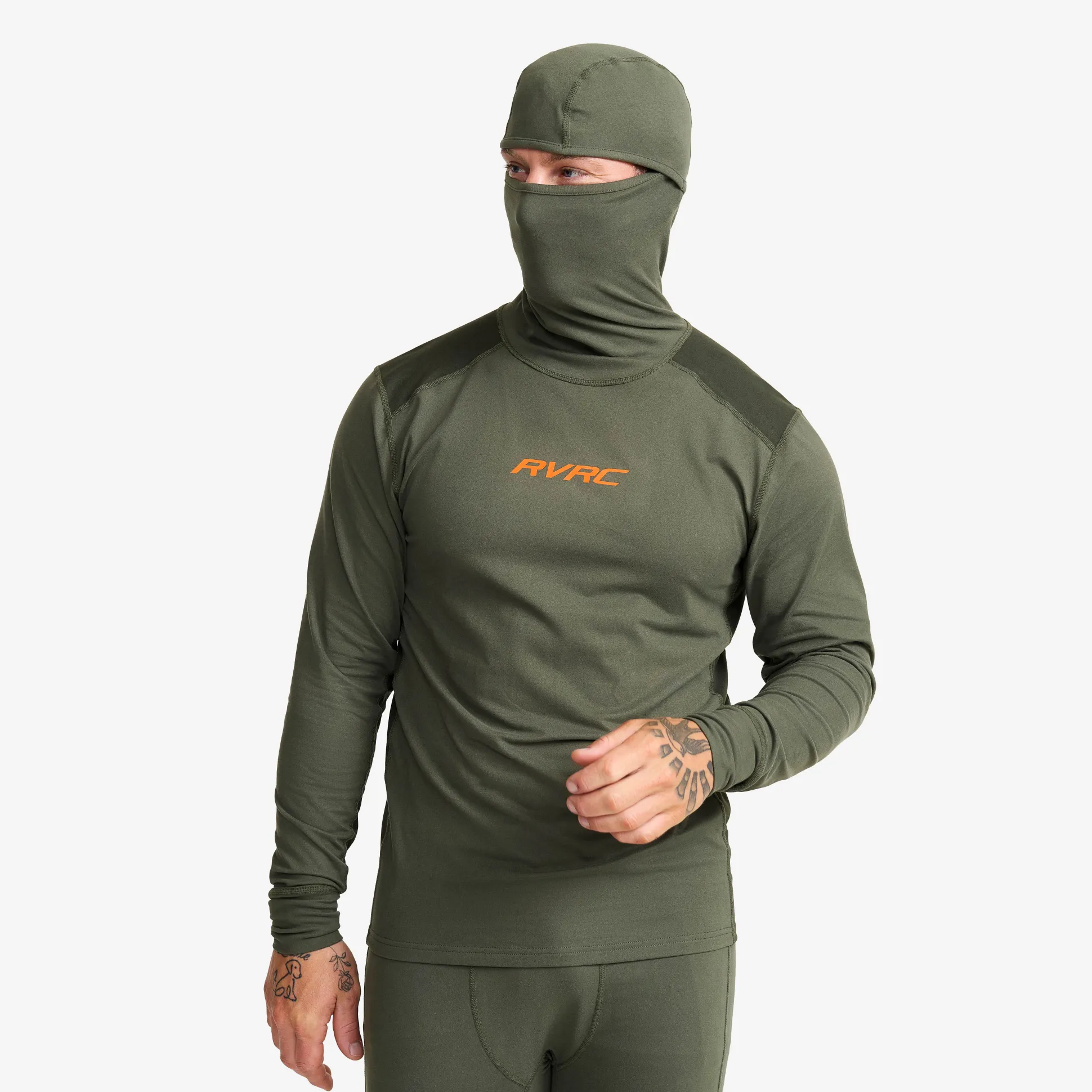 Kosteutta siirtävä, joustava aluskerraston paita integroidulla kasvosuojalla.