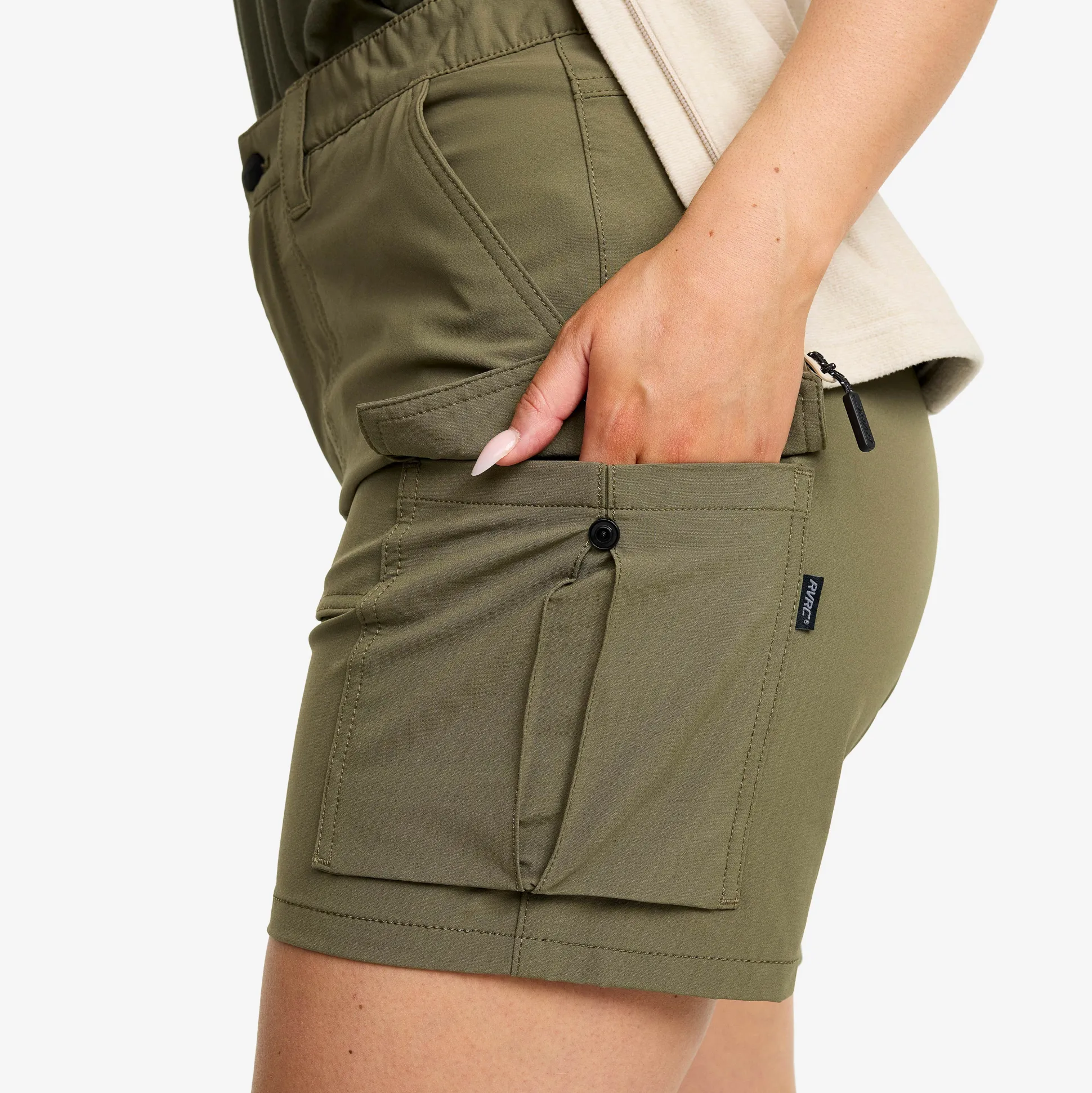 Adventure Cargo Stretch Shorts yhdistävät rennon tyylin ja retkeilyn käytännöllisyyden. Ne sopivat täydellisesti spontaaneihin seikkailuihin työpäivän jälkeen leudossa tai lämpimässä säässä. Nämä ulkoilushortsit on valmistettu kokonaan kevyestä, hengittävästä ja erittäin joustavasta neljään suuntaan joustavasta materiaalista, joka takaa maksimaalisen mukavuuden liikkeessä. Joustava vyötärö varmistaa, että shortsit istuvat juuri oikein. Useissa taskuissa on runsaasti tilaa tavaroillesi, mukaan lukien kaksi tilavaa napillista reisitaskua ja yksi vetoketjullinen tasku takana. Kaiken kaikkiaan Adventure Cargo Stretch Shorts ovat kesän ykkösvaate jokapäiväiselle seikkailijalle, joka arvostaa mukavuutta.