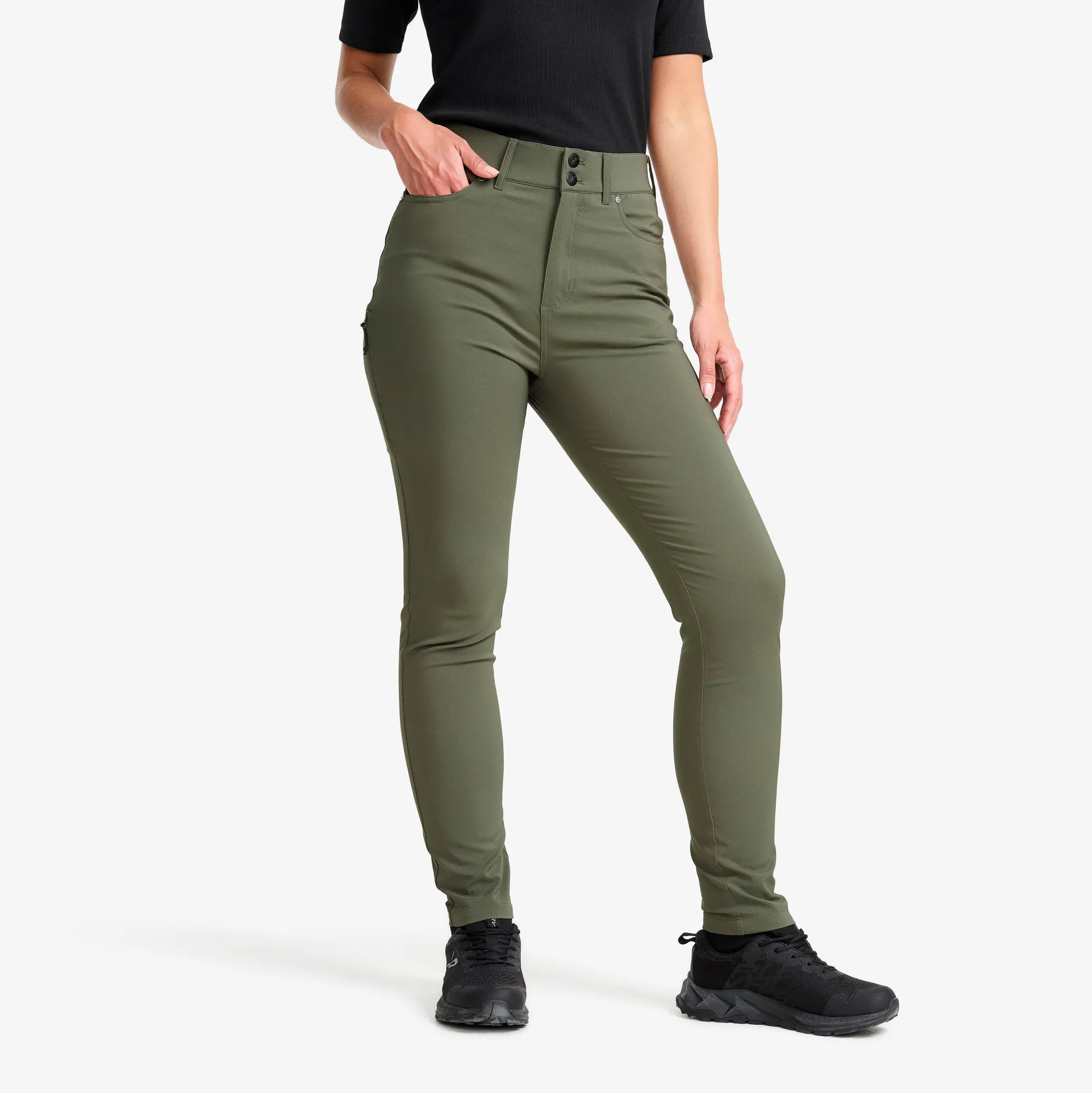 Root High-Waist Stretch Jeans yhdistävät farkkujen klassisen ilmeen ulkoiluhousujen toiminnallisuuteen. Joustavasta kankaasta ja joustavasta vyötärönauhasta valmistetut farkut ovat hyvä valinta, olitpa sitten kävelemässä metsässä tai kaupungissa. Korkeavyötäröinen istuvuus on sekä imarteleva että käytännöllinen ja tarjoaa erinomaista mukavuutta koko päiväksi. Housuissa on vettähylkivä DWR-käsittely, ja viisi fiksua taskua – mukaan lukien vetoketjullinen reisitasku puhelimelle – pitävät tärkeimmät tavarasi helposti saatavilla. Monipuolinen muotoilu yhdistää kaupunkilaiselämäntyylin ja ulkoilun. Nämä farkut on suunniteltu mukavuutta, suorituskykyä ja tyyliä ajatellen.