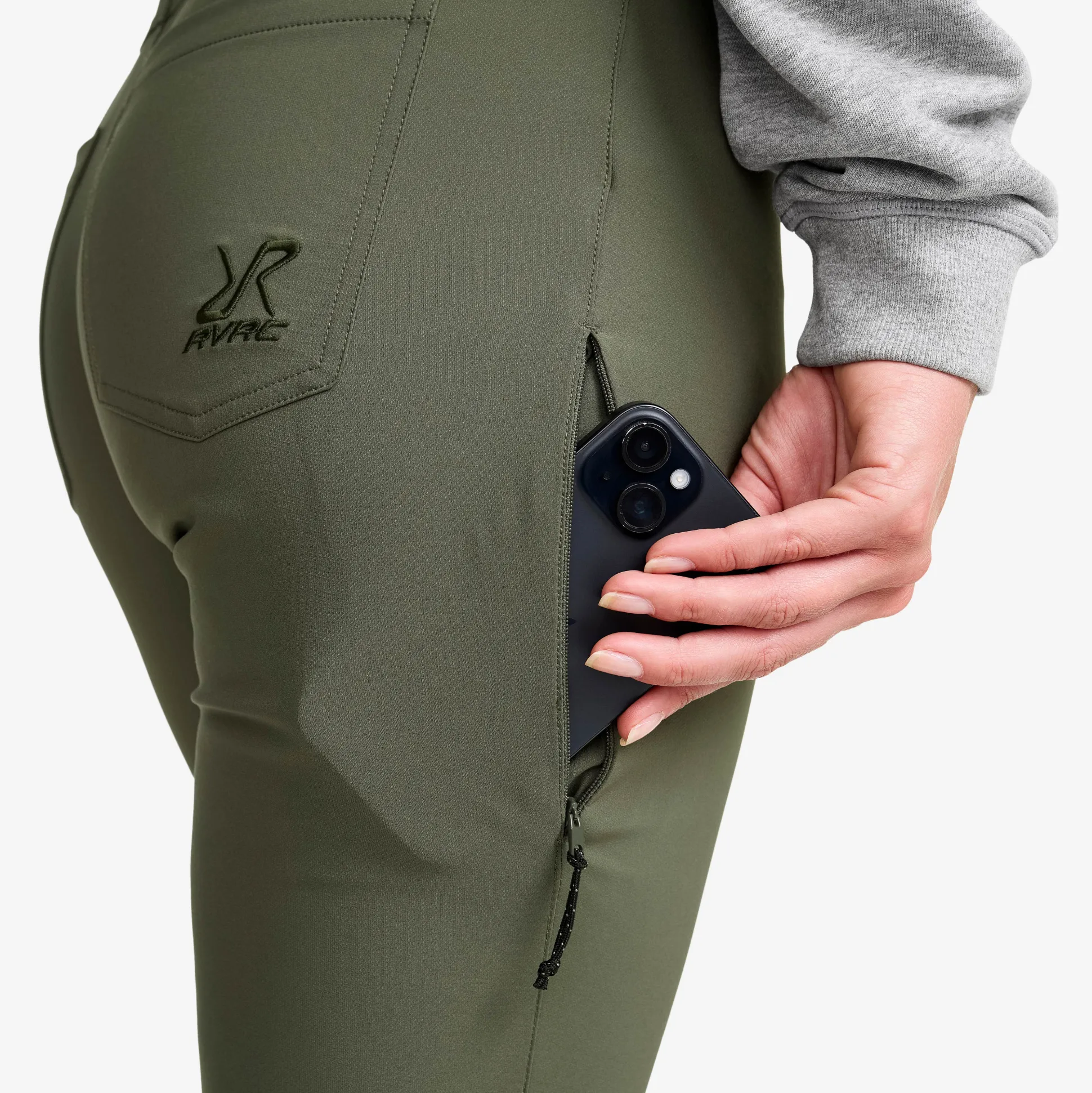 - Pidät housuista, joissa on käteviä yksityiskohtia, kuten vetoketjullinen puhelintasku ja DWR-käsittely